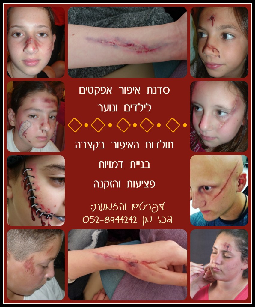 - סדנאות איפור אפקטים מתאימות לילדים מגיל 6 ומעלה, כשהסדנה עוברת התאמה לחומרים המתאימים לכל גיל וגיל.