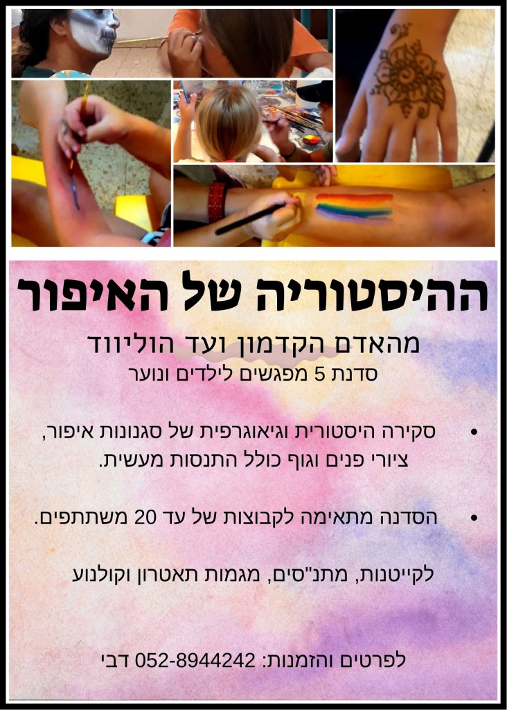 סדנת חמישה מפגשים: ההיסטוריה של האיפור – ממערות האדם הקדמון ועד הוליווד של ימינו
